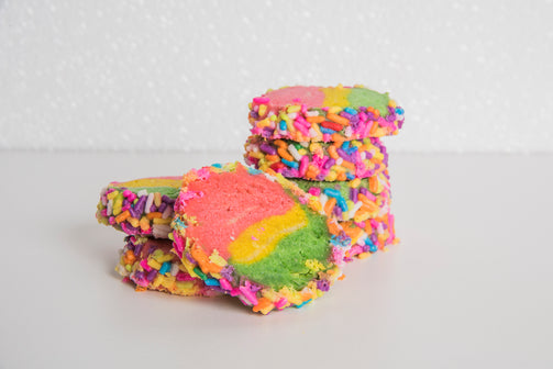These delicate shortbread cookies are swirled with color and sprinkles.