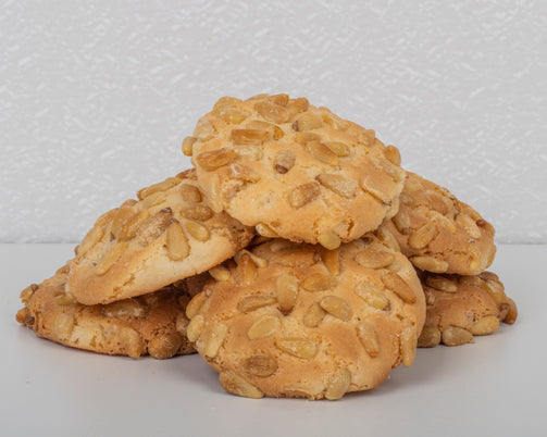 To those pignoli (aka pine nut) nut lovers, a soft and chewy almond cookie covered with the best quality pignoli nuts. This item is very delicate and does not ship well. Modern Pastry is not responsible for this product if it arrives broken due to the delicacy if you as the customer choose to order.